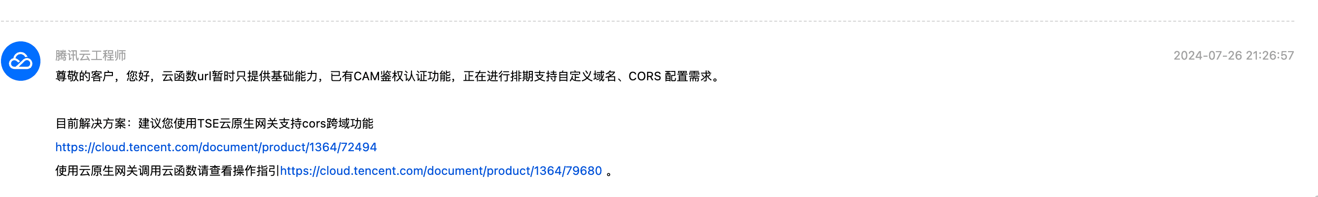 - 最重要的是不支持cors配置,需要再接入云网关才能有这个能力,而一个网关一年要900。